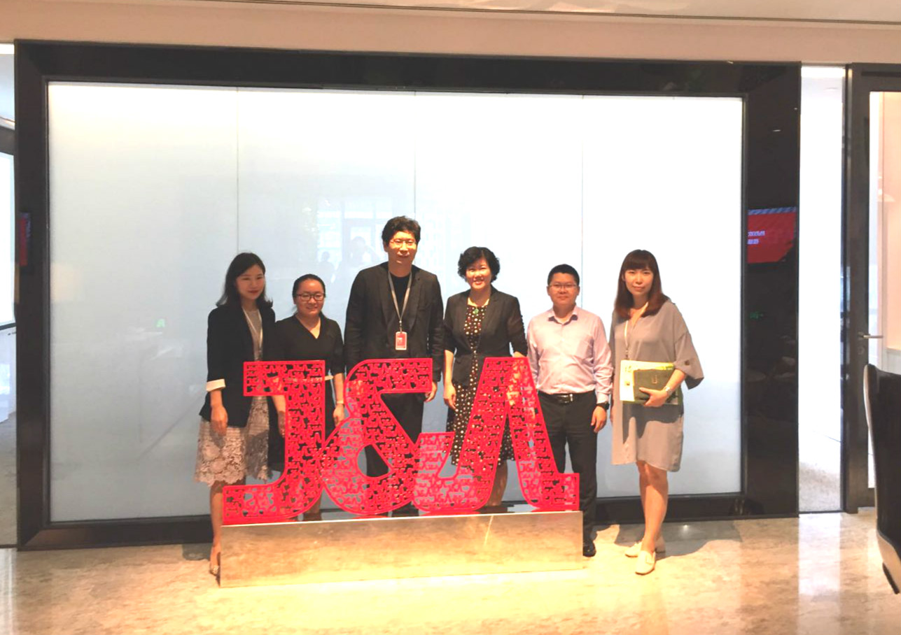 4月24日,杰恩設(shè)計(jì)董事長(zhǎng)姜峰(左三)與協(xié)會(huì)來(lái)訪人員合影