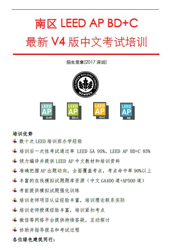 LEED 最新V4版中文考試培訓(xùn)報(bào)名通知(2017年1月6-7日)