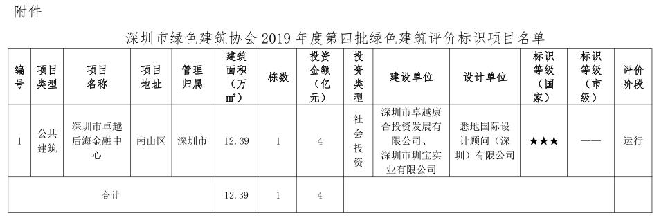 深圳市綠色建筑協(xié)會關(guān)于2019年度第四批綠色建筑評價(jià)標(biāo)識項(xiàng)目的公示