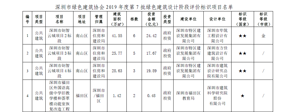 深圳市綠色建筑協(xié)會(huì)關(guān)于2019年度第七批綠色建筑評(píng)價(jià)標(biāo)識(shí)項(xiàng)目的公告