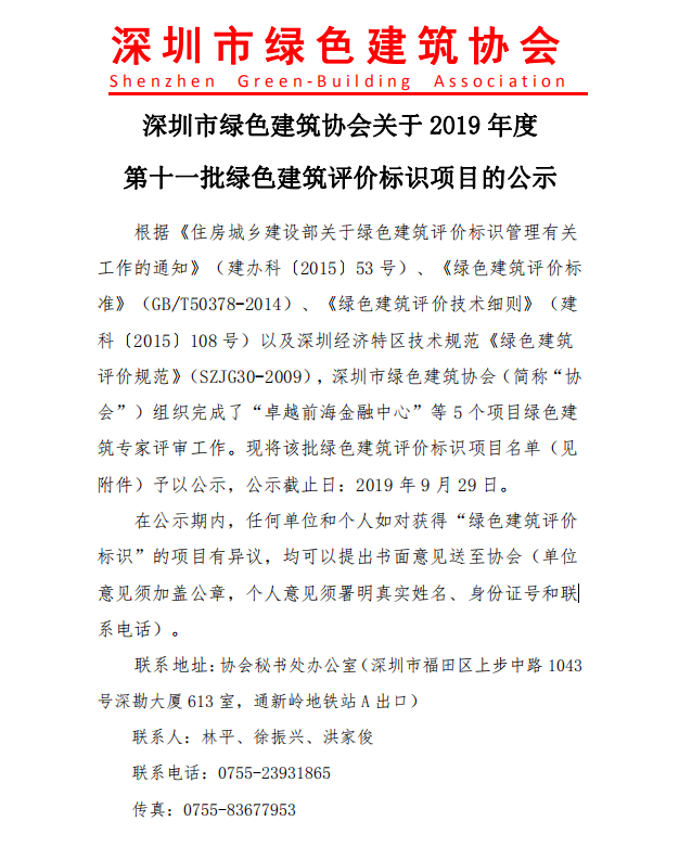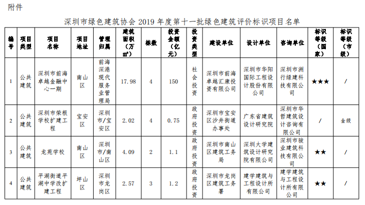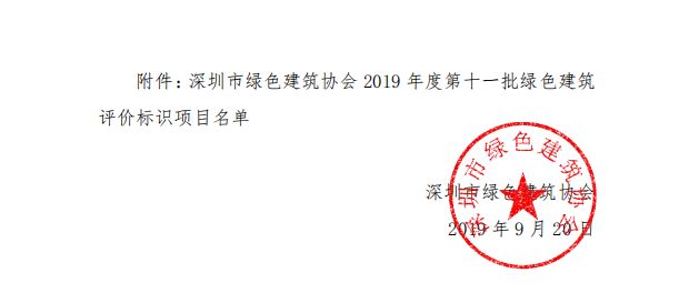深圳市綠色建筑協(xié)會(huì)關(guān)于2019年度第十一批綠色建筑設(shè)計(jì)階段評(píng)價(jià)標(biāo)識(shí)項(xiàng)目的公示