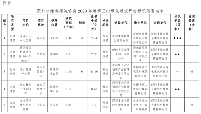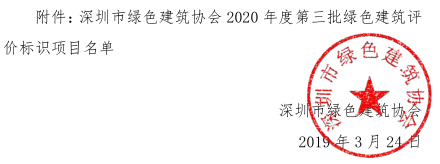 深圳市綠色建筑協(xié)會關(guān)于2020年度第三批綠色建筑評價標(biāo)識項目的公示