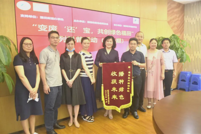 為感謝福田區(qū)外國語學校師生們對本次科普活動的大力支持,王向昱秘書長代表協(xié)會向校方贈送錦旗。王秘書長表示:本次活動是對學生們“變廢還寶”綠色生活價值觀的啟迪,對學生們綠色思想和行為的引領意義深遠,我們今天播種下綠色種子,未來收獲的將是綠色生態(tài)城市建設的一支生力軍。協(xié)會將不忘初心,踐行綠色使命,攜手學校等各方力量將綠色建筑科普工作進行到底!