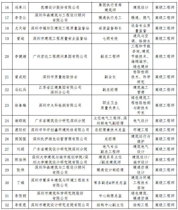 “深圳市綠色建筑協(xié)會(huì)專家委員會(huì)”第五批入選專家名單公告