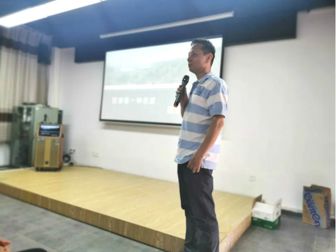 深圳金鑫綠建股份有限公司康寶榮主任率先登臺(tái),引吭高歌,高亢雄渾的歌聲獲得掌聲一片