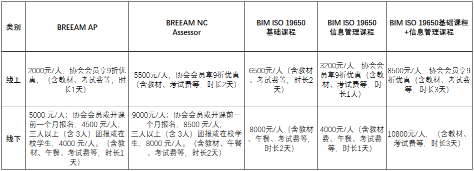 3)BREEAM AP/NC Assessor和BIM ISO 19650線下培訓(xùn)時(shí)間:2020年下半年