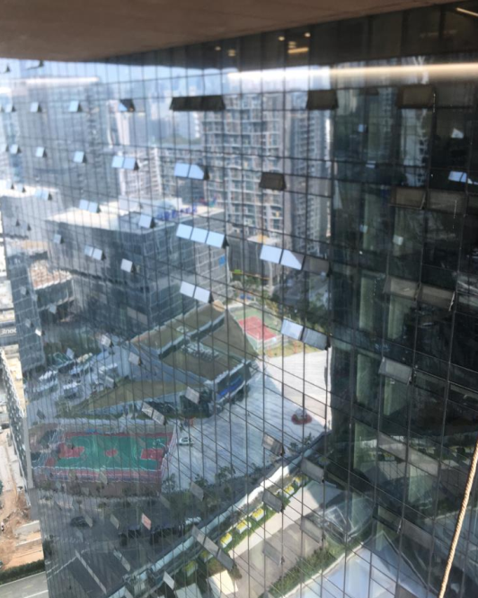本項(xiàng)目外立面為全玻璃幕墻,玻璃幕墻可開啟面積比例大于10%,室內(nèi)空氣流動順暢,大部分空間能夠通過迎風(fēng)側(cè)進(jìn)風(fēng)氣流形成有效氣流,風(fēng)速分布在 0.31m/s~2.50m/s 范圍之內(nèi),滿足人體舒適度要求。主要功能房間通風(fēng)狀況良好,空氣齡分布在 180s 以下, 房間換氣次數(shù)不低于 2 次/h,空氣較新鮮。新風(fēng)系統(tǒng)采用粗效過濾器加中效過濾器,最大程度的過濾了PM2.5等有害顆粒,新風(fēng)量達(dá)到每人每小時(shí)45立方米。項(xiàng)目在地下室設(shè)置了 CO 濃度探測器,監(jiān)測CO濃度作為送\排風(fēng)機(jī)(換氣用途)啟停手段;大樓內(nèi)在會議室、餐廳等人多密集的空間設(shè)置CO2含量監(jiān)測并聯(lián)動控制調(diào)節(jié)新風(fēng)閥的開啟大小。