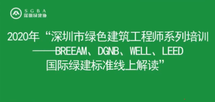 9月22日下午,深圳市綠色建筑協(xié)會組織2020年“深圳市綠色建筑工程師系列培訓(xùn)——BREEAM、DGNB、WELL、LEED國際綠建標(biāo)準(zhǔn)線上解讀”,超過1000人次綠色建筑從業(yè)人員通過觀看直播參與學(xué)習(xí)。協(xié)會王向昱秘書長作開班致辭,本次培訓(xùn)邀請到英國建筑研究院BRE中國區(qū)技術(shù)指導(dǎo)杜楊燕、德國可持續(xù)建筑委員會DGNB中國區(qū)總監(jiān)張凱、國際健康建筑研究院IWBI高級經(jīng)理夏怡和上海可昆建筑科技有限公司資深項目經(jīng)理劉芳等專家,就國外優(yōu)秀標(biāo)準(zhǔn)和案例分享等內(nèi)容進行了精彩分享。
