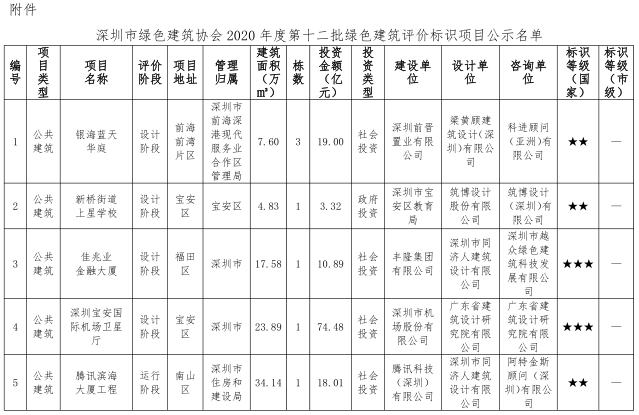 深圳市綠色建筑協(xié)會關(guān)于2020年度第十二批綠色建筑評價(jià)標(biāo)識項(xiàng)目的公示