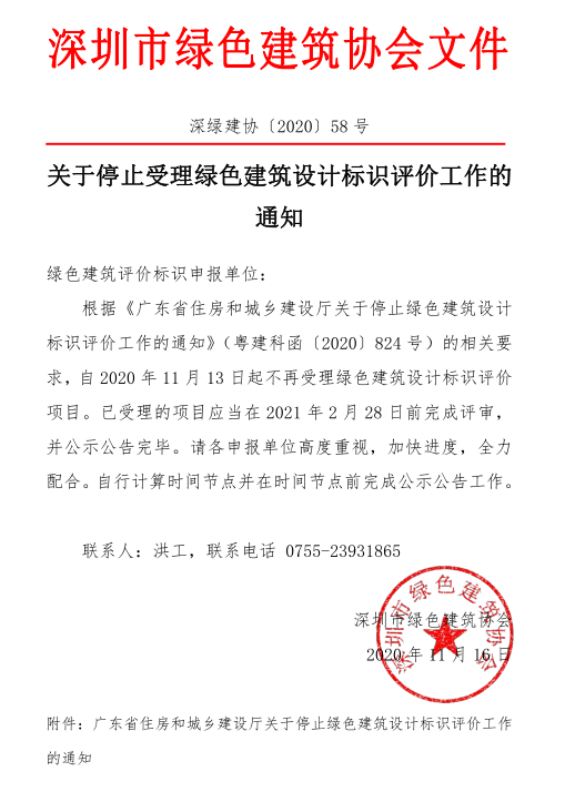 關(guān)于停止受理綠色建筑設(shè)計(jì)標(biāo)識(shí)評(píng)價(jià)工作的通知