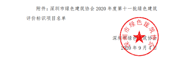 深圳市綠色建筑協(xié)會關(guān)于2020年度第十一批綠色建筑設(shè)計(jì)階段評價標(biāo)識項(xiàng)目的公示