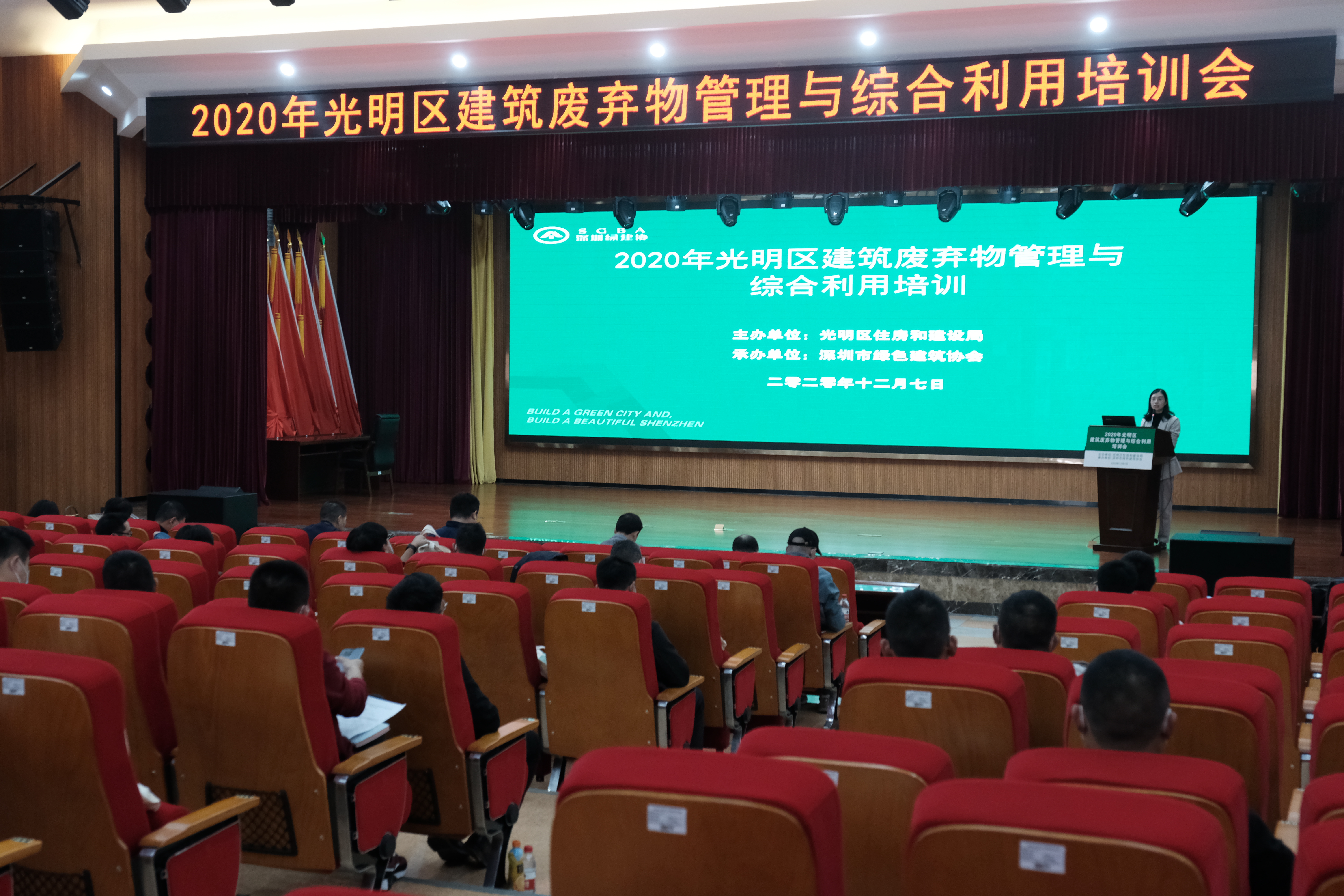 為貫徹落實黨的十九大精神,牢固樹立“創(chuàng)新、協(xié)調(diào)、綠色、開放、共享”的發(fā)展理念,促進(jìn)建筑廢棄物綜合利用,推動無廢光明建設(shè),深圳市綠色建筑協(xié)會(簡稱“協(xié)會”)受光明區(qū)住房和建設(shè)局委托,于2020年12月7日在光明區(qū)玉塘街道辦一辦大禮堂開展了光明區(qū)2020年建筑廢棄物管理與綜合利用培訓(xùn),來自施工和建筑廢棄物綜合利用等單位180余人參與培訓(xùn)。