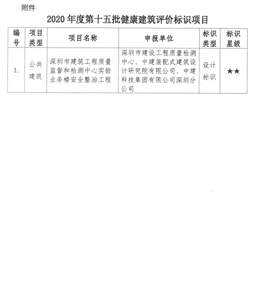 關(guān)于2020年度第十五批健康建筑評價標(biāo)識項(xiàng)目的公示