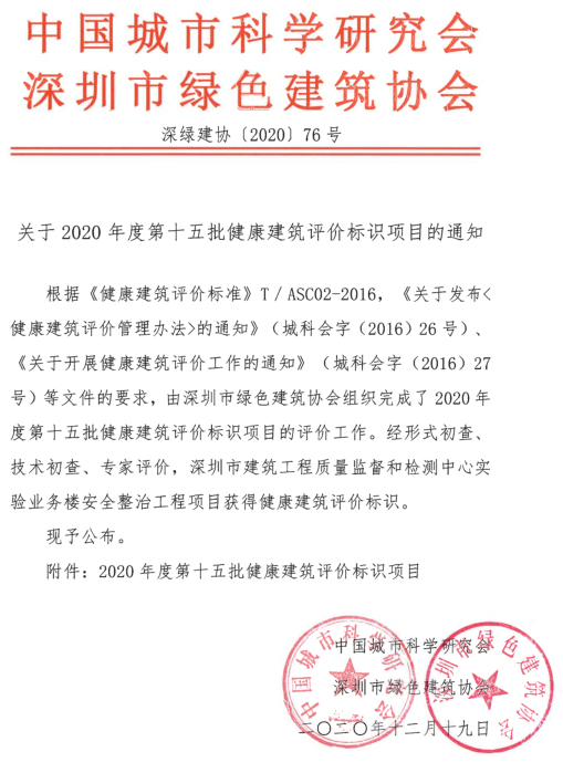 關(guān)于2020年度第十五批健康建筑評價標(biāo)識項目的通知