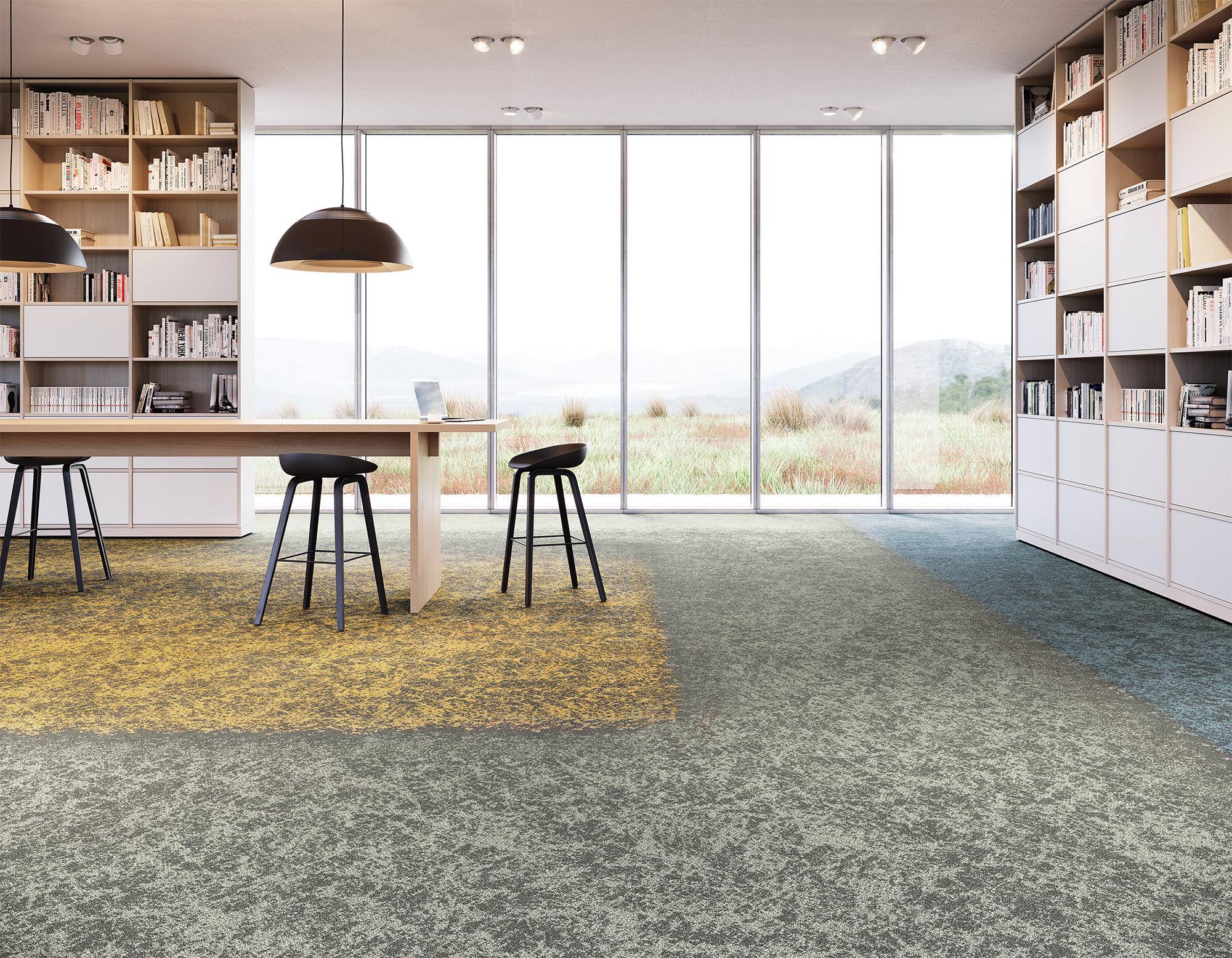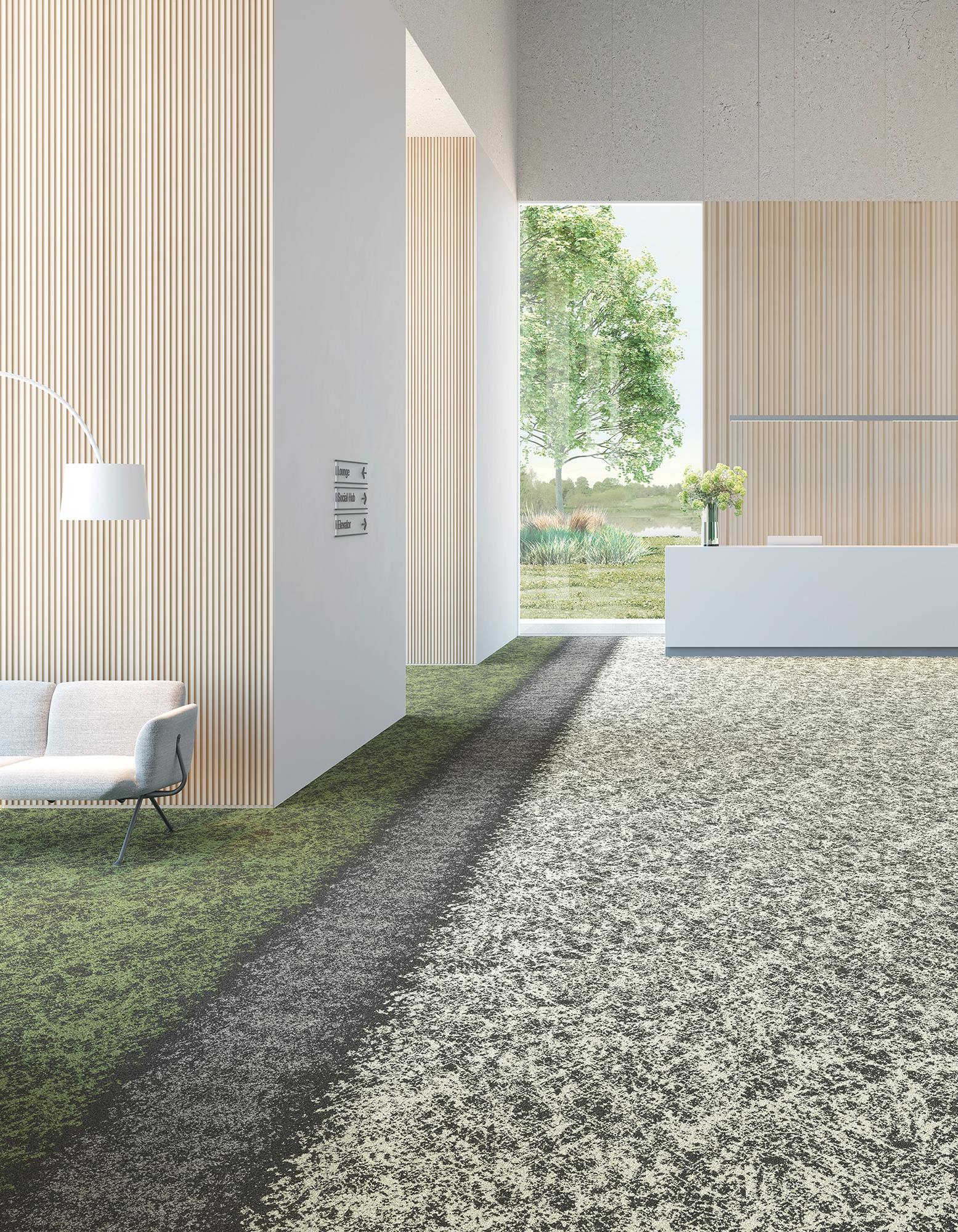 Shifting Fields邊際線系列從地球,天空,海水,這樣天然物質(zhì)間的聯(lián)結(jié)和轉(zhuǎn)變中萃取靈感,以全新的視角,轉(zhuǎn)變空間環(huán)境,打造一種更具安全感與平衡感的工作空間。這樣一種具有生態(tài)感的地面解決方案,可給予空間進行分區(qū)、過渡和指向性的設(shè)計。