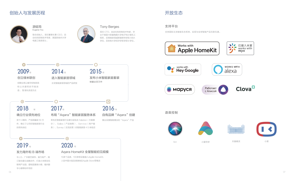 公司從2014年開始進入智能家居領域,主攻小米智能家居的產(chǎn)品研發(fā),專注于低功耗創(chuàng)新型智能家居系統(tǒng)的研究與推廣。2015年發(fā)布了“小米智能家庭”套裝,2017年公司實現(xiàn)了盈利。2018年雙十一期間,綠米聯(lián)創(chuàng)的產(chǎn)品銷量就已超越50萬余件,2019年40多款產(chǎn)品接入Apple Homekit。憑借創(chuàng)新的技術產(chǎn)品與優(yōu)異的市場成績,綠米聯(lián)創(chuàng)確立了在智能家居領域的領頭羊地位。