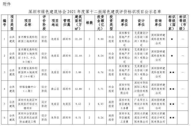 深圳市綠色建筑協(xié)會關(guān)于2021年第十二批綠色建筑評價標(biāo)識項目的公示