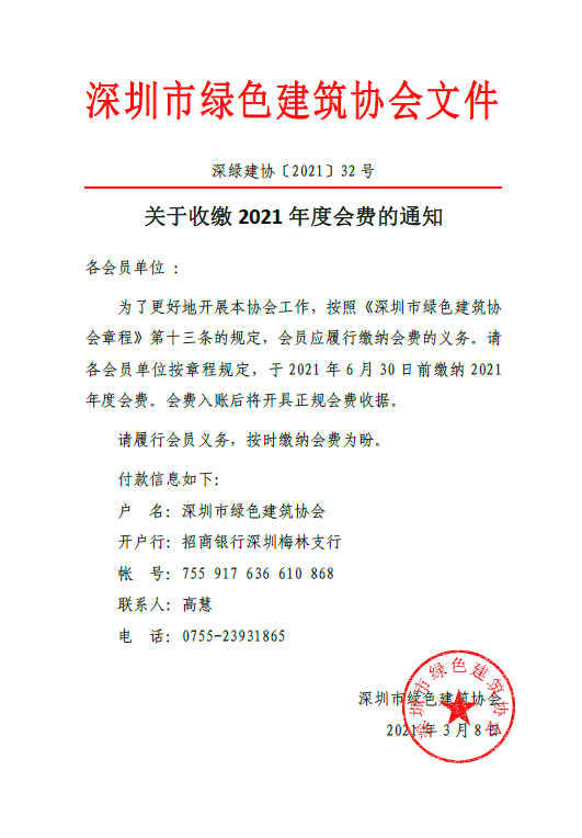 關(guān)于收繳2021 年度會(huì)費(fèi)的通知
