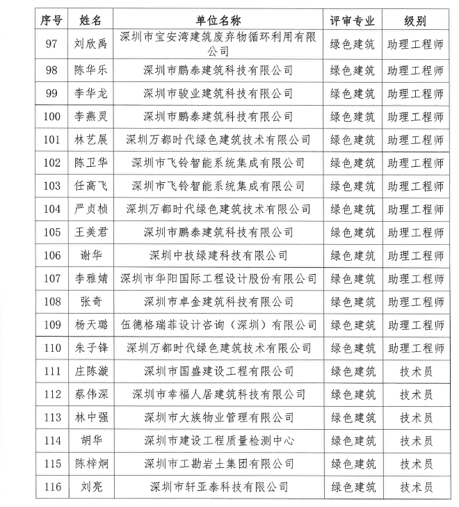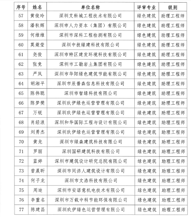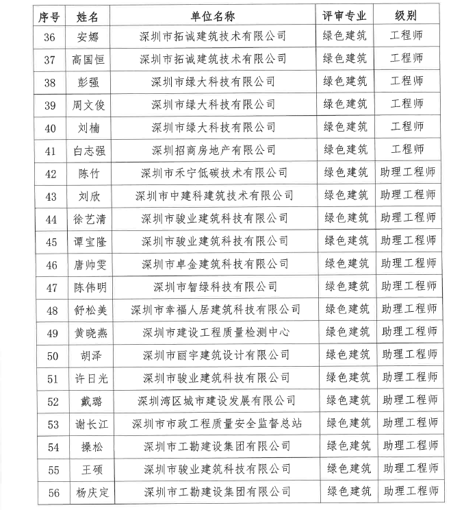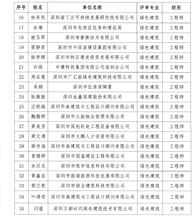 2020年度深圳市綠色建筑專業(yè)高級(jí)職稱評審委員會(huì)中、初級(jí)評審?fù)ㄟ^人員公示