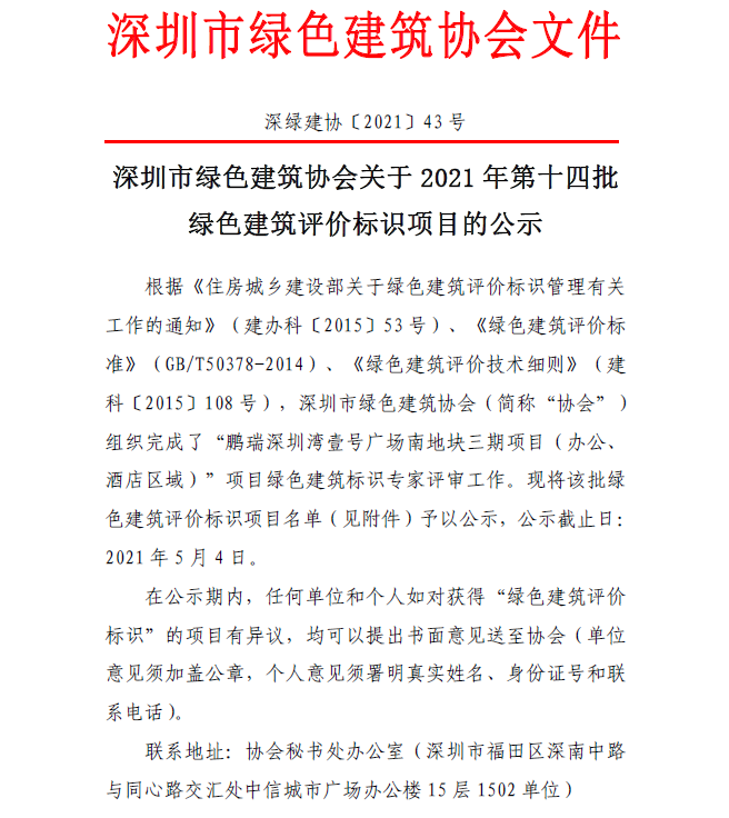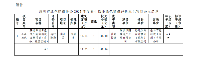 深圳市綠色建筑協(xié)會關(guān)于2021 年第十四批 綠色建筑評價標識項目的公示