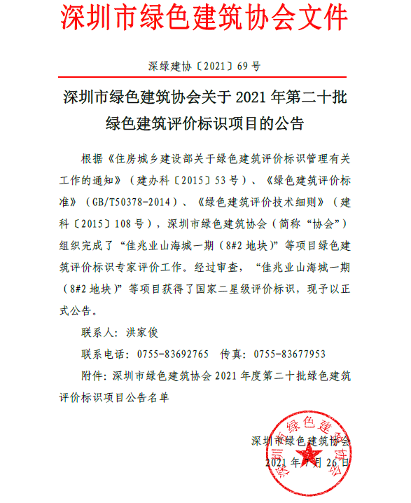 深圳市綠色建筑協(xié)會(huì)關(guān)于2021 年第二十批綠色建筑評(píng)價(jià)標(biāo)識(shí)項(xiàng)目的公告