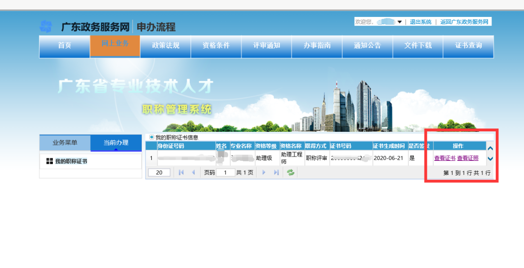 3、跳轉(zhuǎn)到粵省事+ 然后專業(yè)技術(shù)資格證書(shū)