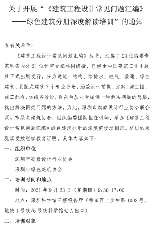 “關(guān)于開展《建筑工程設(shè)計(jì)常見問(wèn)題匯編》——綠色建筑分冊(cè)深度解讀培訓(xùn)”的通知