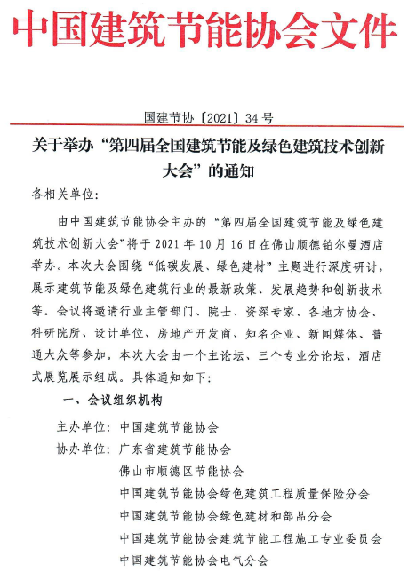 轉(zhuǎn):第四屆全國建筑節(jié)能及綠色建筑技術(shù)創(chuàng)新大會通知