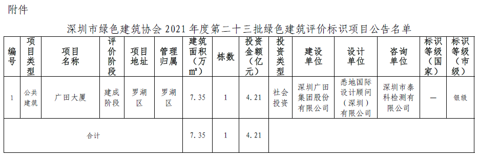 深圳市綠色建筑協(xié)會(huì)關(guān)于2021年度第二十三批綠色建筑評(píng)價(jià)標(biāo)識(shí)項(xiàng)目的公告