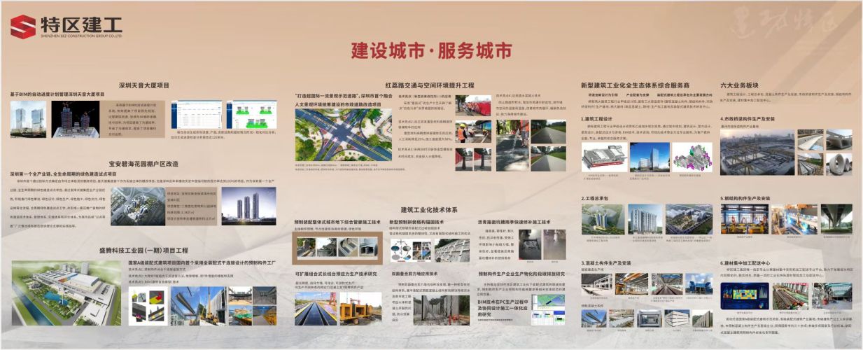 深圳市特區(qū)建工集團有限公司(簡稱“特區(qū)建工集團”) 是深圳市國資委為深化國資國企改 革,推動深圳建筑業(yè)高質量發(fā)展,整合深圳市天健(集團)股份有限公司、深圳市建安(集團) 股份有限公司、深圳市建設(集團)有限公司、深圳市路橋建設集團有限公司、深圳市綜合 交通設計研究院有限公司而形成的大型建工產業(yè)集團。特區(qū)建工集團于 2019 年 12 月注冊成 立,注冊資本金 50 億元,定位于深圳市建工產業(yè)鏈投資和經營平臺,與央企協(xié)同、帶動優(yōu)質 民企共同發(fā)展的市級平臺。 特區(qū)建工集團未來的發(fā)展,設計咨詢業(yè)務是引領、基礎設施投資是帶動、工程總承包能力是 關鍵、建筑科技創(chuàng)新能力是引擎。主要業(yè)務板塊包括建筑設計、建筑施工、建筑工業(yè)化、城 市綜合管養(yǎng)、專業(yè)開發(fā)、建筑科技產業(yè)六個方面,其中建筑設計業(yè)務致力于打造深圳市綜合 能力突出的全過程咨詢服務商;建筑施工業(yè)務將全面增強市政、房建、公路、海洋工程、鋼 結構、機場、港口與航道工程、地下空間開發(fā)等建筑全領域的工程總承包能力;建筑工業(yè)化 業(yè)務以裝配式建筑、裝配式橋梁、瀝青砼和水泥砼生產為核心,構建建筑工業(yè)化多元化生產 能力;城市綜合管養(yǎng)業(yè)務將探索成為國內城市基礎設施一體化智慧化管養(yǎng);專業(yè)開發(fā)業(yè)務將 推動“建工 + 民生地產”的業(yè)務,提升城市產業(yè)空間保障能力;建筑科技業(yè)務將建設深圳建 筑產業(yè)園區(qū),集聚建筑產業(yè)發(fā)展技術、應用、人才等關鍵要素。 特區(qū)建工集團擁有市政、建筑施工總承包“雙特級”資質,市政及房建專業(yè)設計甲級資質, 多項市政公用工程、建筑工程、公路工程、機電工程施工總承包壹級資質。多年來,特區(qū)建 工集團承建了深圳市市政道路、高速公路、建筑工程、橋梁工程、軌道交通、供排水設施、 公共建筑、管廊等數百項重大工程,承擔了深圳市 70% 以上的道路、橋梁、隧道管養(yǎng)任務。 特區(qū)建工集團將以“建工 + 創(chuàng)意”“建工 + 科技”“建工 + 民生地產”“建工 + 金融”為重心, 努力走出專業(yè)、科技、創(chuàng)新發(fā)展之路,計劃到“十四五”末發(fā)展成為營業(yè)收入過千億的大型 綜合性建工產業(yè)集團。