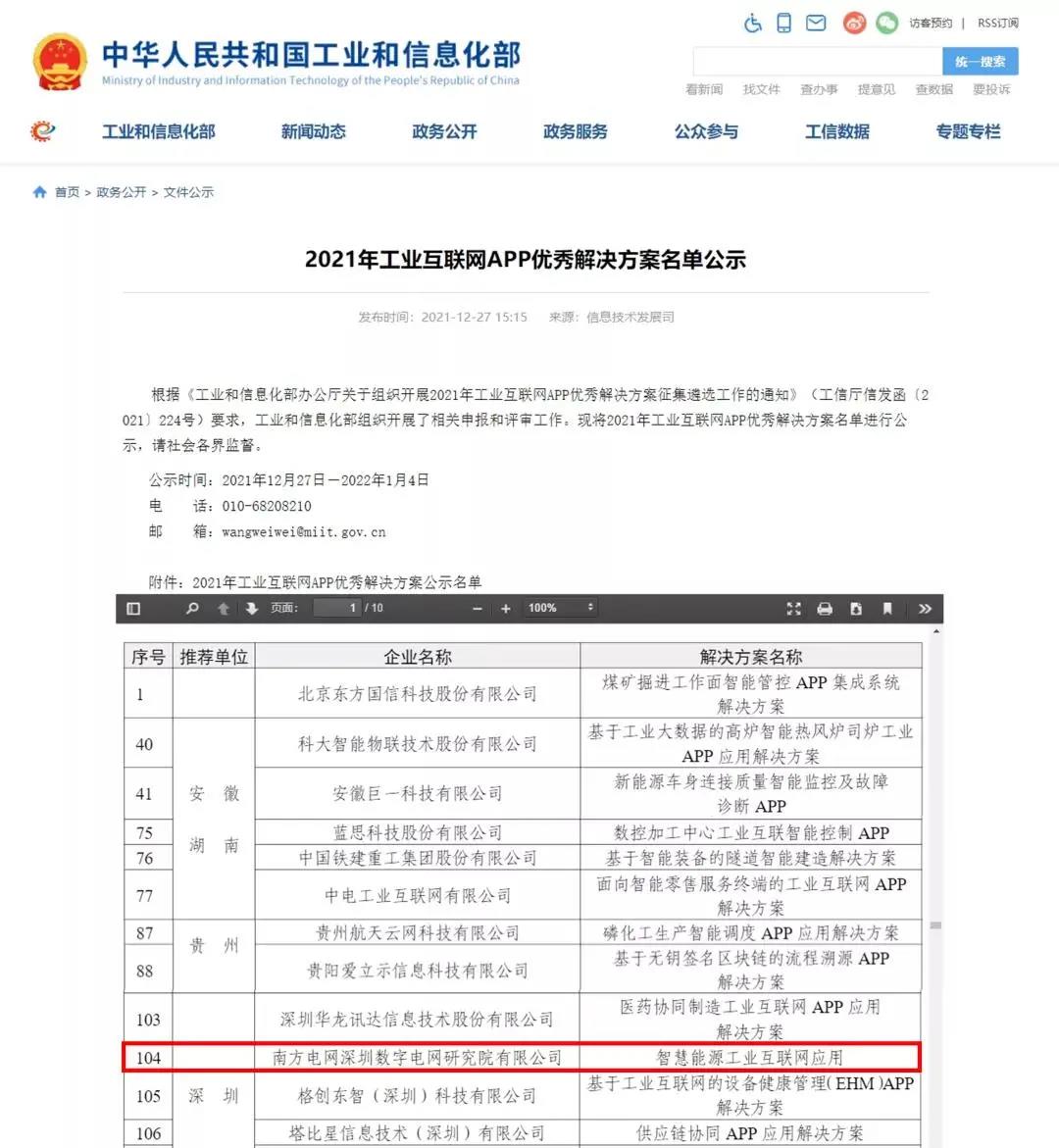 近日,國(guó)家工信部公布2021年工業(yè)互聯(lián)網(wǎng)APP優(yōu)秀解決方案名單,我協(xié)會(huì)會(huì)員單位——南方電網(wǎng)深圳數(shù)字電網(wǎng)研究院有限公司(簡(jiǎn)稱(chēng)“深圳數(shù)研院”)申報(bào)的“智慧能源工業(yè)互聯(lián)網(wǎng)應(yīng)用”榮登榜單,成為深圳市6個(gè)入選企業(yè)之一。這是深圳數(shù)研院“智慧能源工業(yè)互聯(lián)網(wǎng)”應(yīng)用繼去年中國(guó)第二屆工業(yè)互聯(lián)網(wǎng)大賽獲獎(jiǎng)之后斬獲的又一項(xiàng)國(guó)家級(jí)榮譽(yù)。