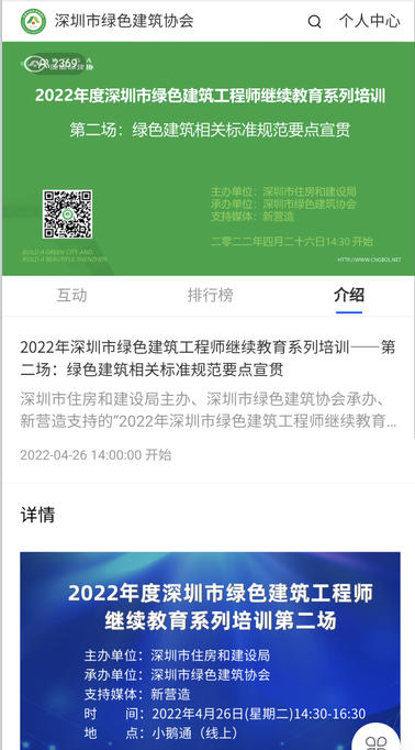 各地疫情形勢依舊嚴峻,但阻擋不了綠色建筑從業(yè)者持續(xù)學習的期待與熱情。4月19日至26日,由深圳市住房和建設局主辦、市綠色建筑協(xié)會承辦、新營造雜志支持的 “2022年度深圳市綠色建筑工程師繼續(xù)教育培訓”通過線上平臺在每周二與行業(yè)從業(yè)者如期見面。綠色建筑工程師繼續(xù)教育培訓受到大家的熱烈歡迎,掀起一股學習熱潮,線上開播不到半小時學習人次就已破千,總共近4000人次參與。
