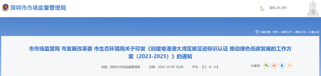 創(chuàng)建粵港澳大灣區(qū)碳足跡標(biāo)識(shí)認(rèn)證 推動(dòng)綠色低碳發(fā)展的工作方案(2023-2025)