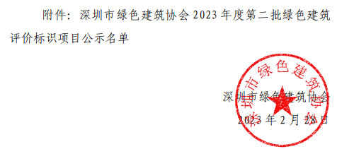 深圳市綠色建筑協(xié)會關(guān)于2023年第二批綠色建筑評價(jià)標(biāo)識項(xiàng)目的公示