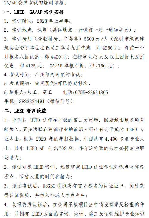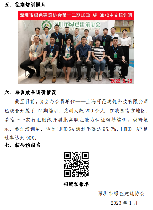 深圳市綠色建筑協(xié)會第十三期LEED AP?BD+C ?中文培訓通知