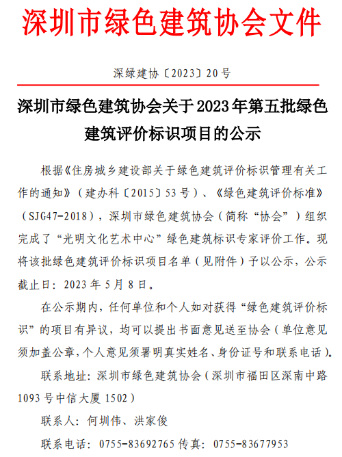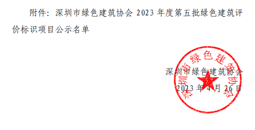 深圳市綠色建筑協(xié)會關(guān)于2023年第五批綠色建筑評價標識項目的公示