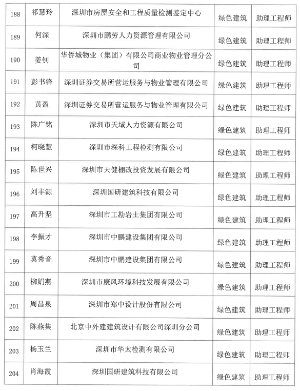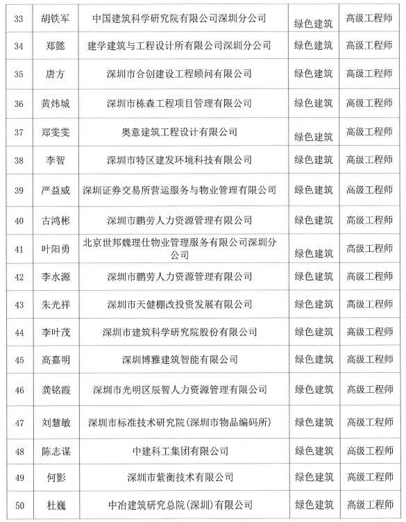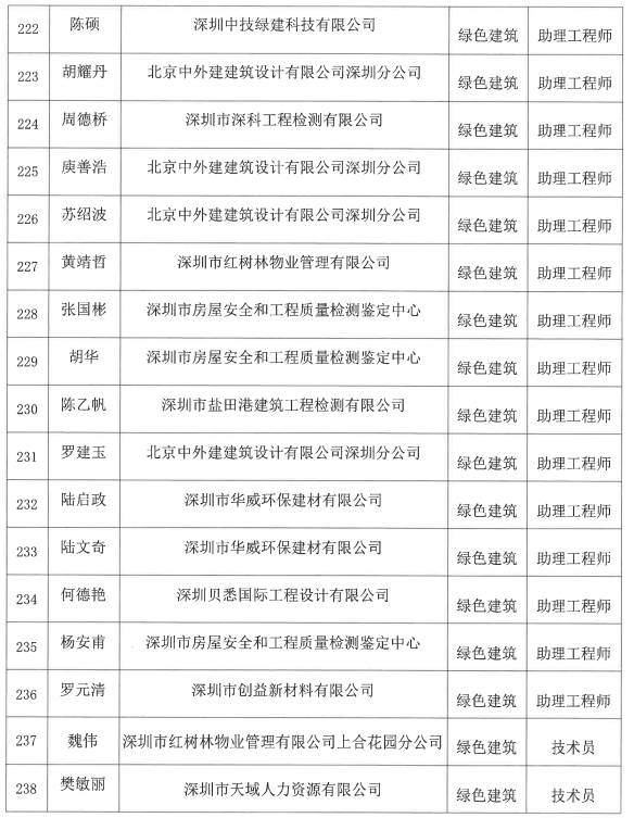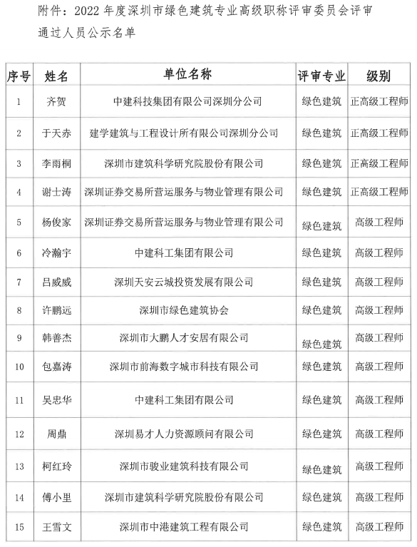2022年度深圳市綠色建筑專業(yè)高級(jí)職稱評(píng)審委員會(huì)評(píng)審?fù)ㄟ^人員公示