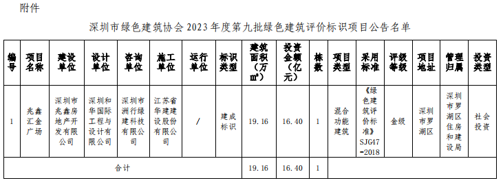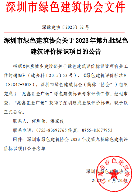 深圳市綠色建筑協(xié)會關于2023年第九批綠色建筑評價標識項目的公告