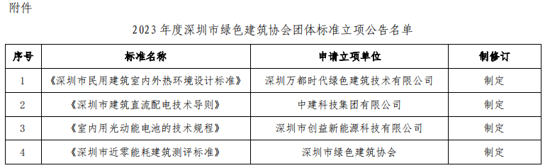 關(guān)于2023年度深圳市綠色建筑協(xié)會(huì)團(tuán)體標(biāo)準(zhǔn)立項(xiàng)的公告