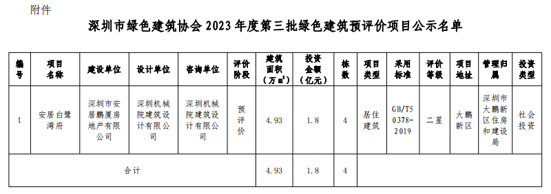 深圳市綠色建筑協(xié)會(huì)關(guān)于2023年第三批綠色建筑預(yù)評(píng)價(jià)標(biāo)識(shí)項(xiàng)目的公示