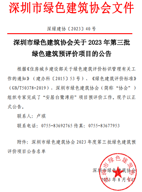 深圳市綠色建筑協(xié)會關(guān)于2023年第三批綠色建筑預(yù)評價標識項目的公告