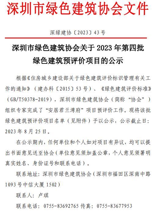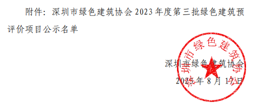 深圳市綠色建筑協(xié)會關于2023年第四批綠色建筑預評價項目的公示