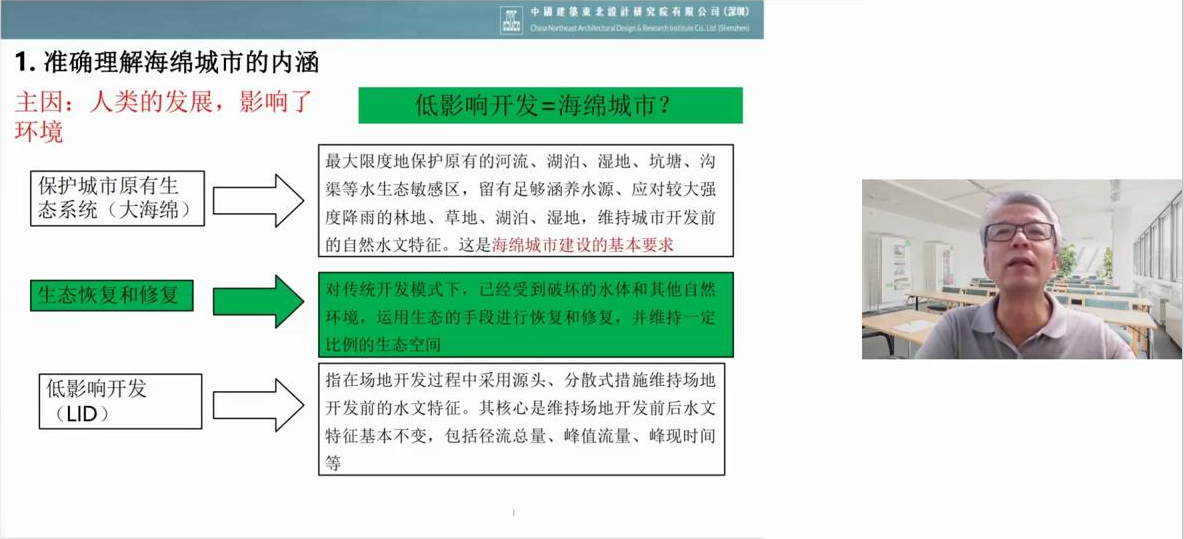 中國建筑東北設(shè)計研究院有限公司深圳分公司副總工程師朱寶峰圍繞“對海綿城市的再認識”展開講解