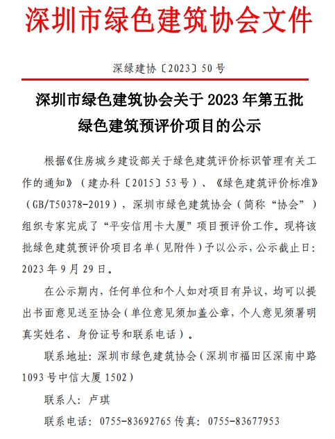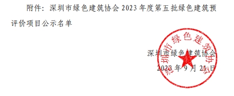 深圳市綠色建筑協(xié)會關(guān)于2023年第五批綠色建筑預評價標識項目的公示