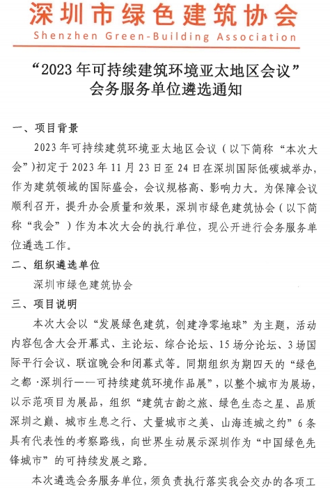 “2023年可持續(xù)建筑環(huán)境亞太地區(qū)會(huì)議”會(huì)務(wù)公司遴選通知