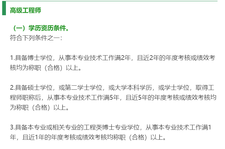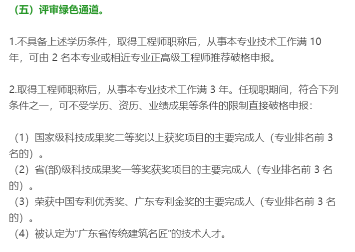 根據(jù)《廣東省建筑工程技術(shù)人才職稱評價改革實施方案》(粵人社規(guī)【2019】33號)的具體要求,高級工程師申報條件如下: