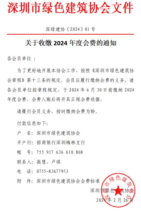附件:深圳市綠色建筑協(xié)會會費收費標準