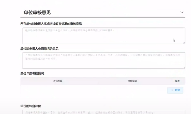 五、點(diǎn)擊“單位審核-審核”,查看申報(bào)人材料拉到最下面,填寫(xiě)單位審核意見(jiàn):