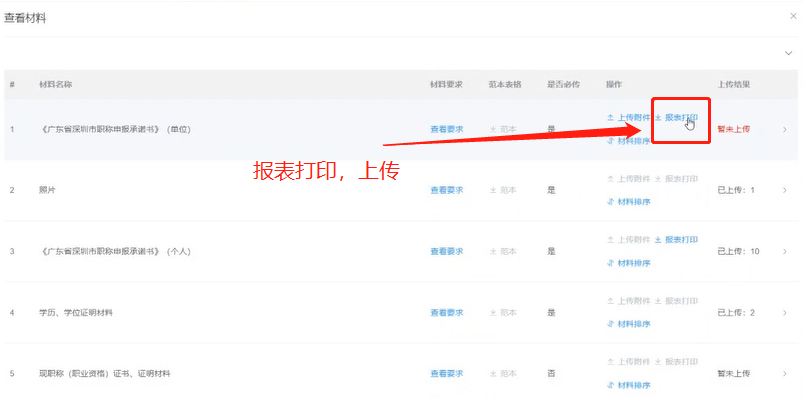六、點(diǎn)擊“上傳/查看附件”,點(diǎn)擊“報(bào)表打印”,打印填寫(xiě)后“上傳”