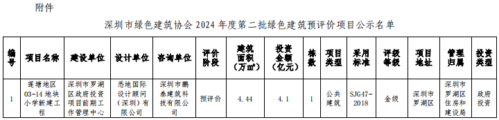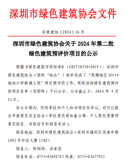 深圳市綠色建筑協(xié)會(huì)關(guān)于2024年第二批綠色建筑預(yù)評(píng)價(jià)項(xiàng)目的公示